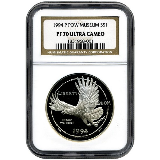 1994 P POW Silver Dollar PF70 UC NGC Brown Label