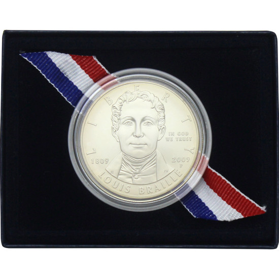 2009 P Louis Braille Bicentennial Silver Dollar BU Coin in OGP