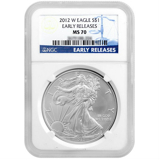 2012 West Point Mint (W) Burnished Silver American Eagle (SAE) MS70 Early Release (ER) NGC Blue Label