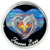 But if you’re looking for something completely unique, silver and bronze medallions and bars are a great choice! There are several different designs to choose from featuring hearts, flowers, a bottle of wine, a baby cupid and teddy bear, and even a simple heart-shaped silver medallion proclaiming 'With All My Love'. Also available is a 2013 Silver American Eagle in a Valentine’s Day Snaplock case, as well as a 2013 Australia Silver Forever Love half ounce silver coin featuring two adorable dolphins forming a heart. Several designs are available hand-painted in vibrant colors, and most are customizable with optional engraving.