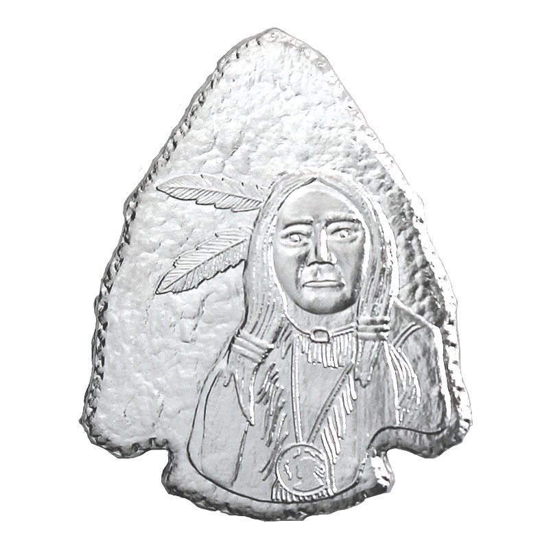 For the July 2013 Silver of the Month we are highlighting something a little different from our typical round silver medallion – a uniquely-shaped silver arrowhead! Produced at the SilverTowne Mint, SilverTowne offers a beautifully and professionally crafted silver medallion arrowhead, featuring a traditional arrowhead shape with a Native American etched in the front of the medallion.