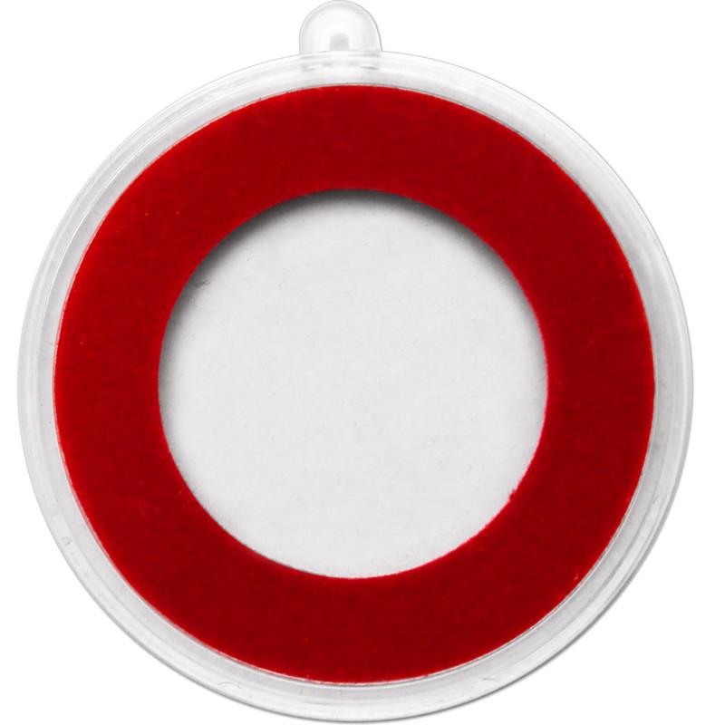 Fitted Protective Plastic Capsules with Ornament Hook with red insert for 1/2 (0.5/Half) ounce (One Ounce) medallions and rounds.
