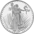 Augustus Saint-Gaudens (last name is also refered to as "St Gaudens") is widely known for designing the twenty-dollar gold coin minted from 1907-1933. This replica silver medallion is modeled after Augustus' original striding-Liberty design which was is now currently used on modern American Gold Eagle Bullion coins.