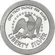DESIGN: This impressive design boasts a proof-like finish background with the Liberty Bell in the forefront on the obverse and the words "LIFE LIBERTY HAPPINESS" and "1 TROY OUNCE .999 PURE SILVER" around the rim of the stackable-grooved rim. The reverse features the likeness of the heraldic eagle that was featured on the US Mint's Liberty Seated circulated coins along with 16 stars curved around the eagle and the inscriptions "ONE TROY OUNCE • 999 SILVER" above and "LIBERTY SILVER" beneath the eagle's talons. The grooved rim, which make the rounds stackable, follow all the way around the edge making it a reeded edge.