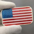 Great as a Patriotic Gift, a total of 2 Troy Ounces of .999 Fine Silver. This set includes the Enameled SilverTowne Minted 1oz American Flag Bar with an engravable back and the current year-dated 2025 American Silver Eagle BU issued from the US Government with a $1 Face Value.