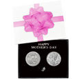 Your Mother's Day gift will arrive in protective plastic capsules inside of our SilverTowne black 2 piece gift box. A velvet 2 hole insert holds your silver pieces snug inside the box. Pairing perfectly with the gift, the package is finished with a SilverTowne original box sleeve in our Pink Bow design. The sleeve was designed with a blank area on the back for you to write a message or To/From on for gift-giving. No gift wrapping or gift tags needed with this convenient option! See above for additional packaging options.