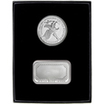 Great for a Graduation Gift, a total of 2 Troy Ounces of .999 Fine Silver. This set includes the SilverTowne Minted 1oz Congratulations Graduate! Proud of You! Bar with an engravable back and the current year-dated 2025 American Silver Eagle BU issued from the US Government with a $1 Face Value.