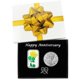 Happy Anniversary Yellow Rose Enameled Silver Bar and Silver American Eagle 2pc Gift Set