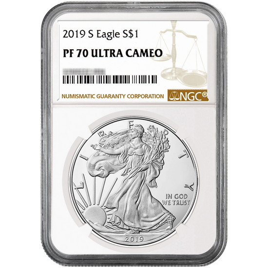 2019 S Silver American Eagle Coin PF70 UC NGC Brown Label