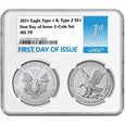 2021 Silver American Eagle (SAE) Type 1 Heraldic Eagle Reverse & Type 2 Landing Eagle Reverse MS70 First Day of Issue NGC Multiholder 1st Label