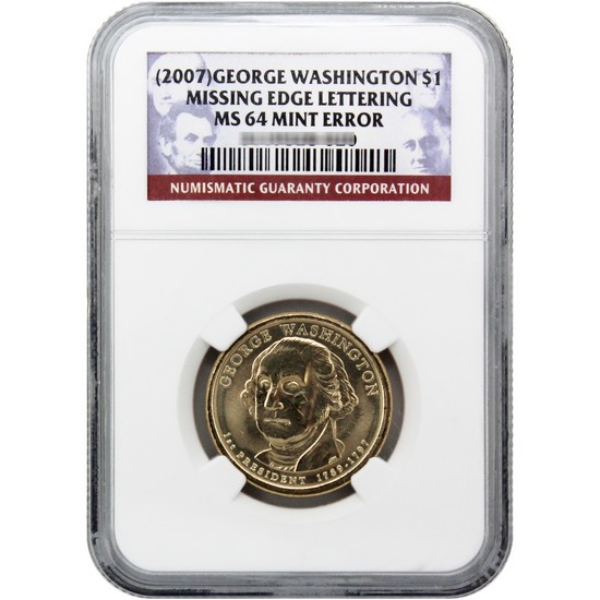 2007 George Washington Presidential Dollar MS64 NGC Missing Edge Lettering Error