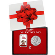 Your Valentine's Day gift will arrive in protective plastic capsules inside of our SilverTowne black 2 piece gift box. A velvet 2 hole insert holds your silver pieces snug inside the box. Pairing perfectly with the gift, the package is finished with a SilverTowne original box sleeve in our Red Bow design. The sleeve was designed with a blank area on the back for you to write a message or To/From on for gift-giving. No gift wrapping or gift tags needed with this convenient option! See above for additional packaging options.