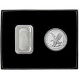 Great for a Father's Day Gift, a total of 2 Troy Ounces of .999 Fine Silver. This set includes the SilverTowne Minted 1oz Enameled I Love You Bear Bar with an engravable back and the current year-dated 2025 American Silver Eagle BU issued from the US Government with a $1 Face Value.