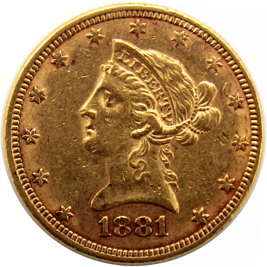 1881 $10 Gold Liberty Extra Fine - Almost Uncirculated Condition