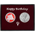 Birthday Enameled I Love You Silver Medallion and Silver American Eagle 2pc Gift Set