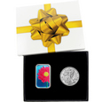 Pink Daisy Enameled Silver Bar and Silver American Eagle 2pc Gift Set