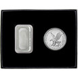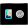 White Daisy Enameled Silver Bar and Silver American Eagle 2pc Gift Set