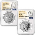 NGC Certified 2023 Peace & Morgan Silver Dollar Set MS70 FDI Morgan and Peace Dollar Label