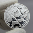 Custom minted in the USA at the SilverTowne Mint in Winchester, Indiana using pure .999 fine silver bullion and hand-enameled (hand-painted) by SilverTowne artists. The obverse of this round features the U.S. Space Force emblem and the words "UNITED STATES SPACE FORCE" with the space force emblem painted black and the words "UNITED STATES SPACE FORCE TM" enameled blue. The reverse a patriotic design with a billowing American flag in the middle and the words "LAND OF THE FREE BECAUSE OF THE BRAVE" circled around the design along with the weight and purity designation of " ONE OUNCE .999 FINE SILVER".