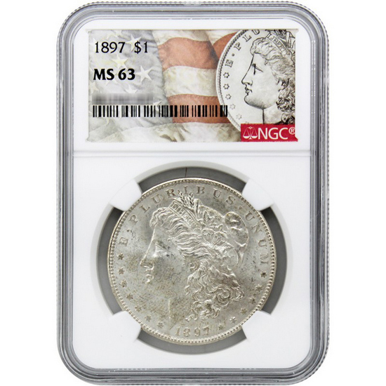 1897 Morgan Silver Dollar MS63 NGC Morgan/Flag Label
