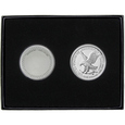 Your gift will arrive in protective plastic capsules inside of our SilverTowne black 2 piece gift box. A velvet 2 hole insert holds your silver pieces snug inside the box. Pairing perfectly with the gift, the package is finished with a SilverTowne original box sleeve in our American Flag Pattern design. The sleeve was designed with a blank area on the back for you to write a message or To/From on for gift-giving. No gift wrapping or gift tags needed with this convenient option! See above for additional packaging options.
