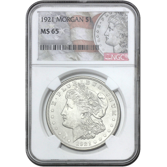 1921 Morgan Silver Dollar MS65 NGC Morgan/Flag Label