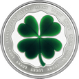 The Lucky Four Leaf Clover Round is custom minted in the USA at the SilverTowne Mint in Winchester, Indiana using pure .999 fine silver bullion and hand-enameled by SilverTowne artists. Exclusive to SilverTowne, the obverse of this medallion features a central 4 leaf clover atop proof-like background with a wavy rim area and the repeat of LUCKY all around and the clover itself painted in a deep green color. The reverse features our standard non-dated design that includes the weight and purity designation of "ONE TROY OUNCE .999 FINE SILVER" around a circle area designated for engraving.