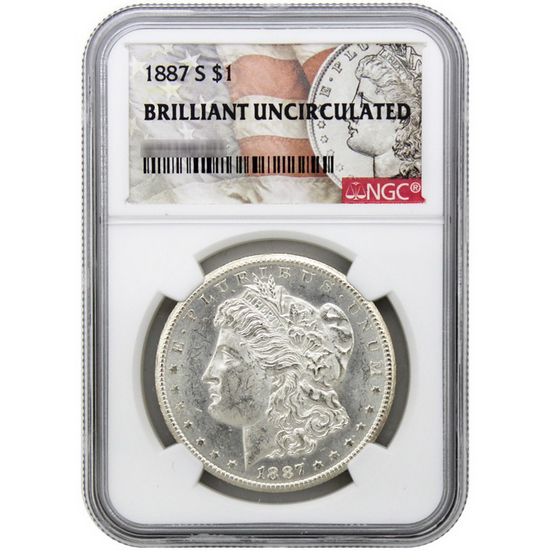1887 San Francisco Morgan Silver Dollar BU NGC Morgan/Flag Label