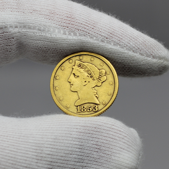 1853(No Mint Mark - Philadelphia Minted) $5 Gold Liberty Fine to Very Fine Condition