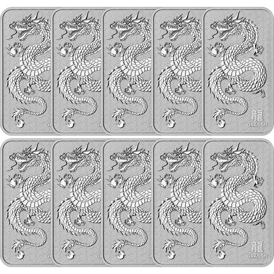 10 Count Dragon Silver Bullion Bars
